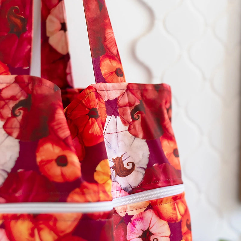 The Designer Bums Tote Bags are a versatile design with a multitude of uses. Made from water resistant PUL and generously sized, these bags are the perfect addition to your eco collection. Keep them in your car and house for supermarket shopping, farmers market bag, trips to the park or beach, as well as overnight trips. Their size and reinforced base make them ideal for carrying larger items when needed. The wide opening at the top makes them the perfect outdoor companion.
